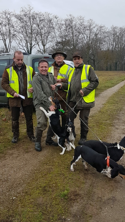 Brevet sur Lapins - FONSORBES (31) - Dimanche 23 novembre 2025 - Organisé par Francis SASSAREU et Marc BREIL. Juges : Gérard THOMAS (Président) et Samuel ESCANDE. 4 Petits Chiens Courant Suisses d'un excellent modèle en état de chasse. Découplé à 15h30. Après une quête appliquée et quelques récris, Saphir lance un lapin. La meute le mène vivement, mais le lapin sera vite terré. Par la suite, on assistera à plusieurs chasses pas toujours abouties. Ont obtenu : SAPHIR des Varennes du Val de Loire 130 pts (B) - SOLOGNE des Varennes du Val de Loire 125 pts (B) - UMA des Varennes du Val de Loire 125 pts (B) et ULOTE des Varennes du Val de Loire 115 pts (B)